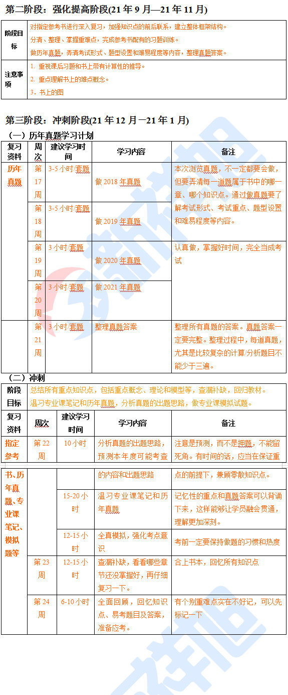 本阶段,对指定参考书进行深入复习,加强知识点的前后联系,建立整体框架结构,难点内容深入思考和理解,尤其是概念性的内容和模型,同时如果有时间应该完成参考书配有的习题训练。同时不断翻阅和研究历年真题,弄清考试形式、题型设置和难易程度等内容,以结合促进复习的效率。