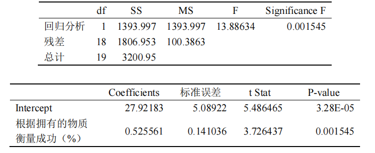 5、某咨询公司最近进行了一项关于居民价值取向与心理状况的调查。根据 20 个国家相关数据,以“对 成功和赚钱有很大压力”作为因变量,“根据自己拥有的东西衡量个人成功”作为自变量,估计线性回归 方程,所得结果如下: