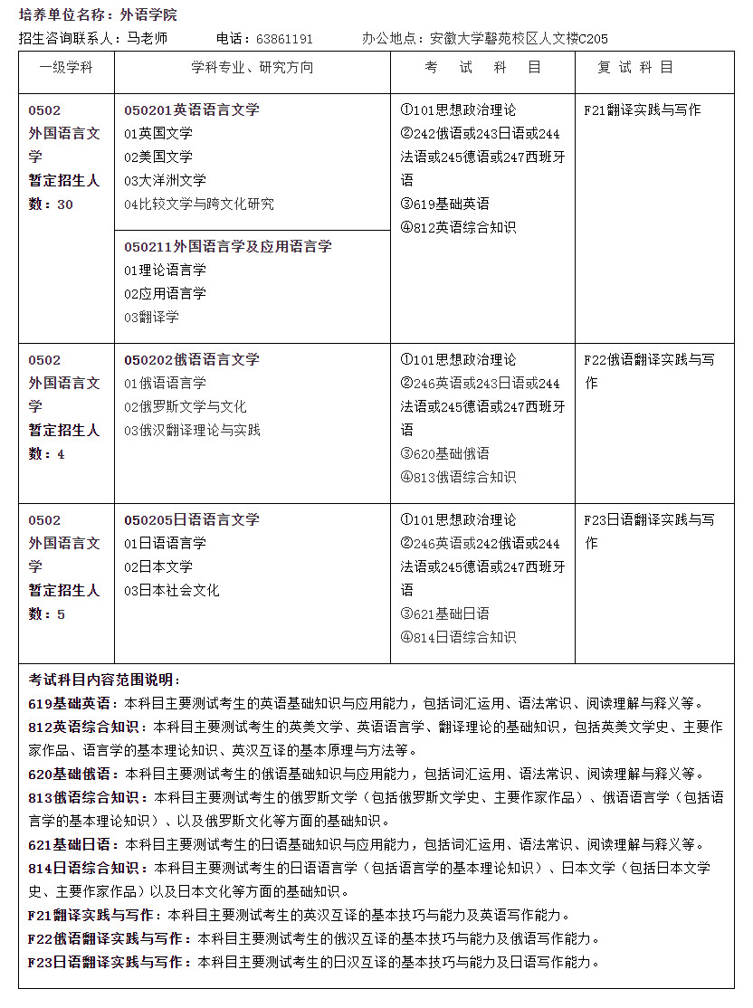 安徽大学考研辅导班:22年安徽大学外语学院学术学位考研招生人数、考试科目及专业课考试范围