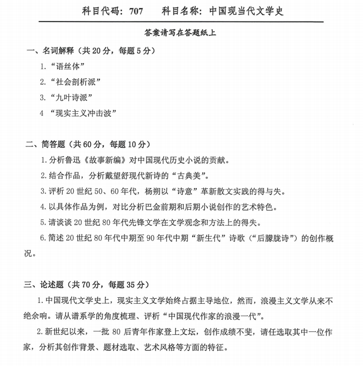 浙江财经大学考研辅导班:2021年浙江财经大学硕士考研真题之707中国现当代文学史