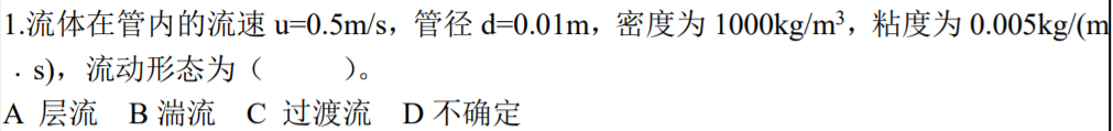 2016年第一题,考察了流动形态和雷诺数的关系以及雷诺数的简单计算。