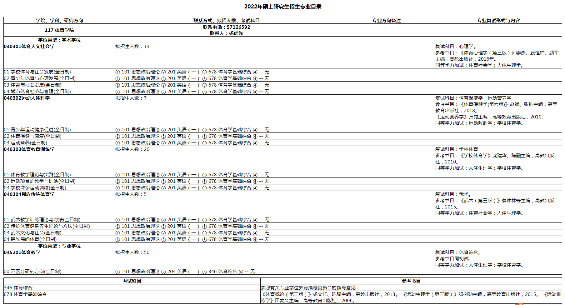 上师大考研辅导班:2022年上海师范大学体育学院考研招生专业、考试科目、招生人数、参考书目公布