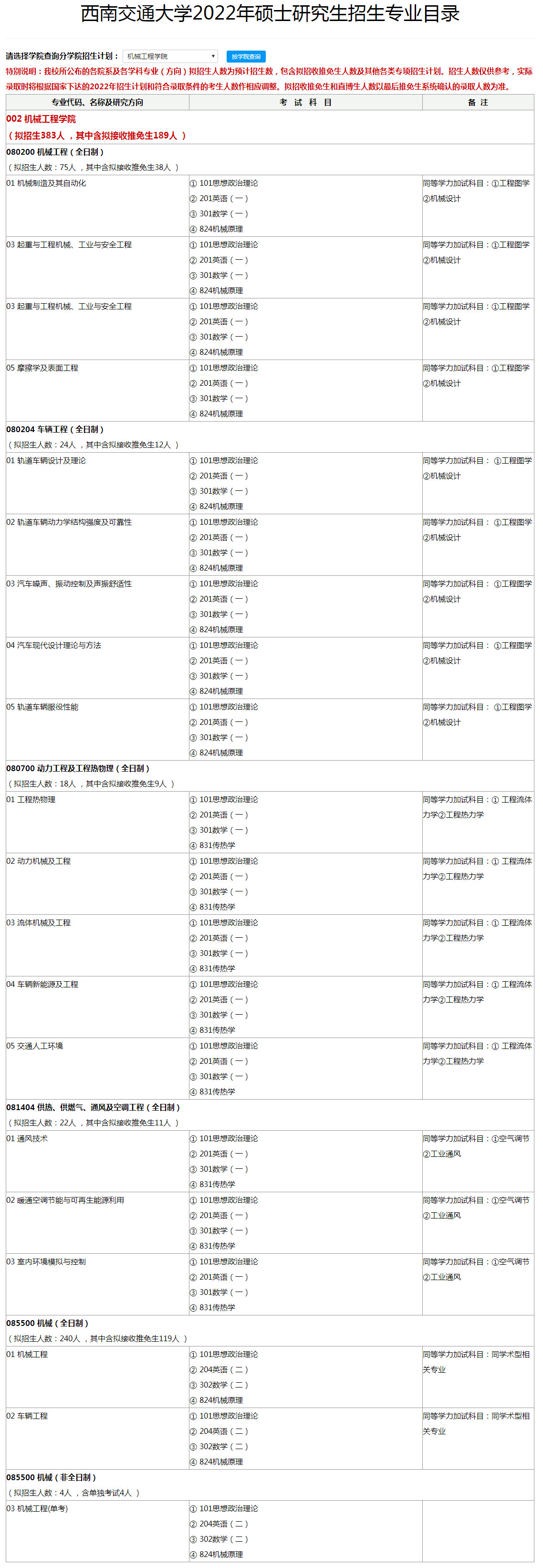 西南交通大学考研辅导班:2022年西南交通大学机械工程学院考研招生人数及考试科目