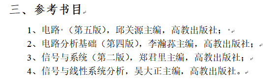 信号的考察范围比较宽,对于状态方程之前的内容都会考察到,电路的范围相对较小,都是三项电路之前的内容。官方指定教材有