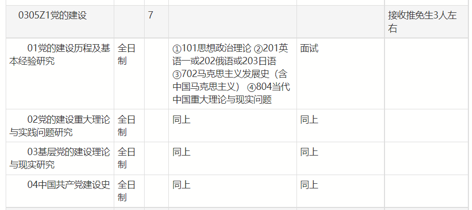 北师大的党建专业也是刚开设没两年,是一八年第一次招生的,那会儿真的非常冷门,进复试两个全都录取了。然后现在招生规模稍有扩大。一九年的专业课是马克思主义中国化理论和中共党史。二零年增加了一门是党的历史与理论,现在这个专业也渐渐地火起来了,基本每年都会有一定的扩招名额。专业课的参考书目是《毛泽东思想和中国特色社会主义理论体系概论》,也就是最新版的毛概教材,还有《从鸦片战争到五四运动》胡绳,《中国共产党的70年》。