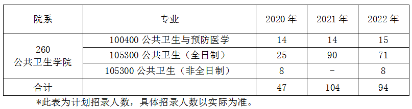 下表是2020年-2022年厦门大学公共卫生学院招生计划人数及2019年-2021年厦门大学公共卫生学院研究生报录情况介绍: