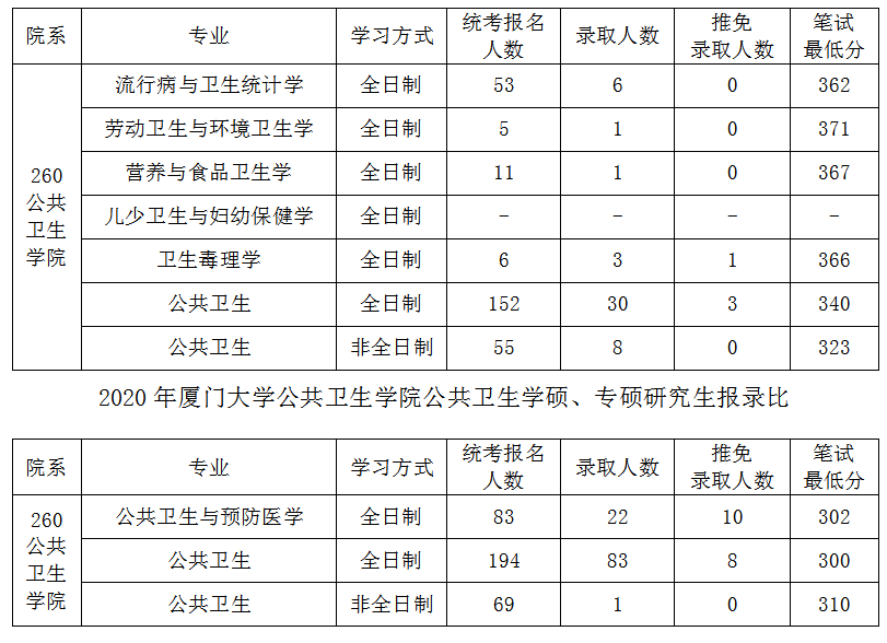 2021年厦门大学公共卫生学院公共卫生学硕、专硕研究生报录比