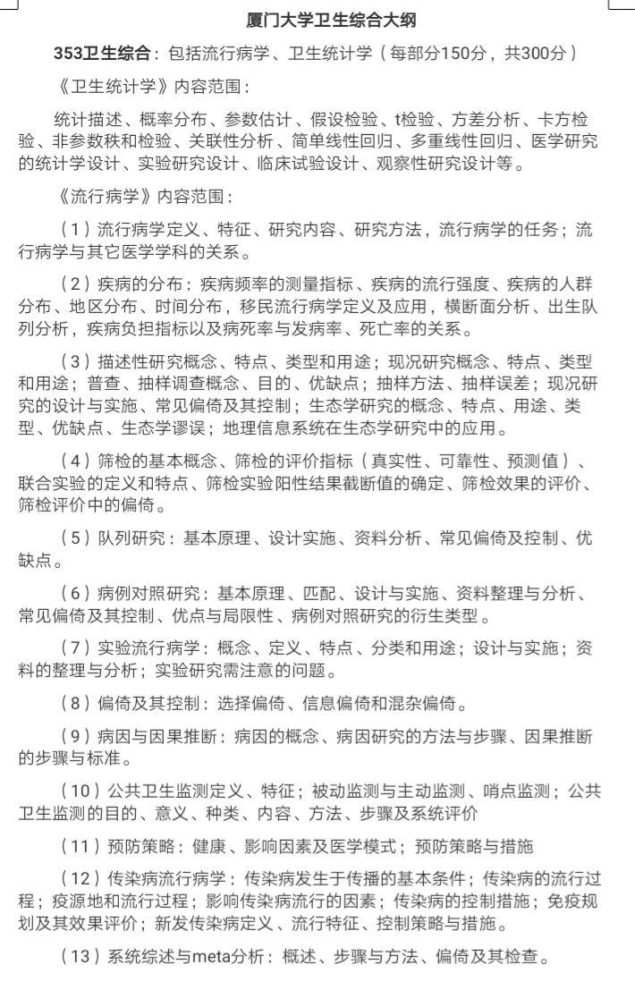四、专业课初试的考察内容:附厦门大学卫生综合大纲