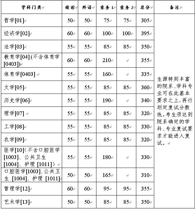 四、复试分数线: