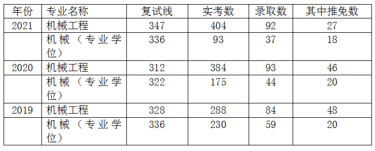 2、整理了近三年学硕和专硕对应的复试线、报考人数还有报录比,可以看出报考东南大学机械工程的难度还是不小的。