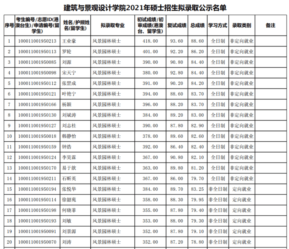 从21年的拟录取情况看,北京大学风景园林考研统考招收了24人,最终录取的分数在325~420之间,建议大家将目标分数定在370会比较稳妥。
