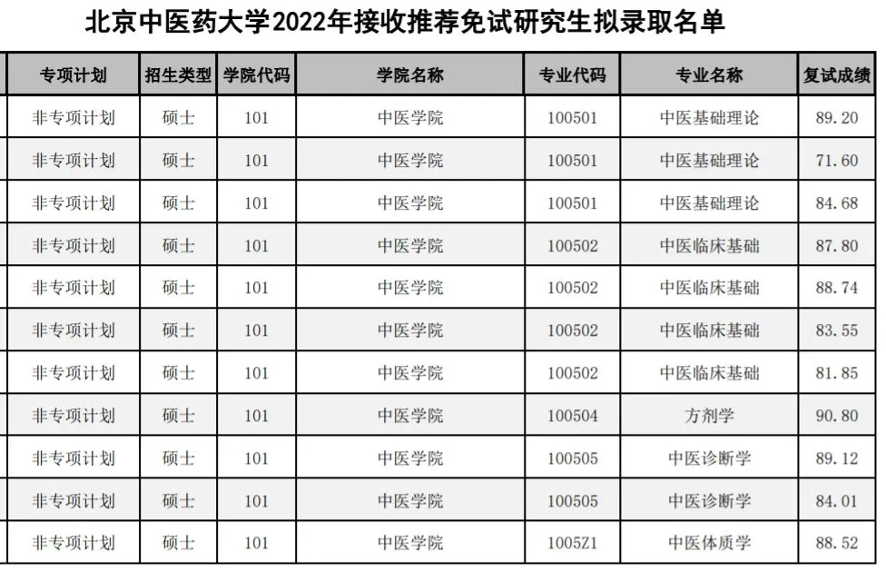 考研报录比是考生在择校专业时关注的重点内容之一,因此考研报录比成为考生衡量报考难度的重要因素。北京中医药大学虽然没有公布历年考研报录比,但在官网公布了拟录取名单,各位可以适当参考。