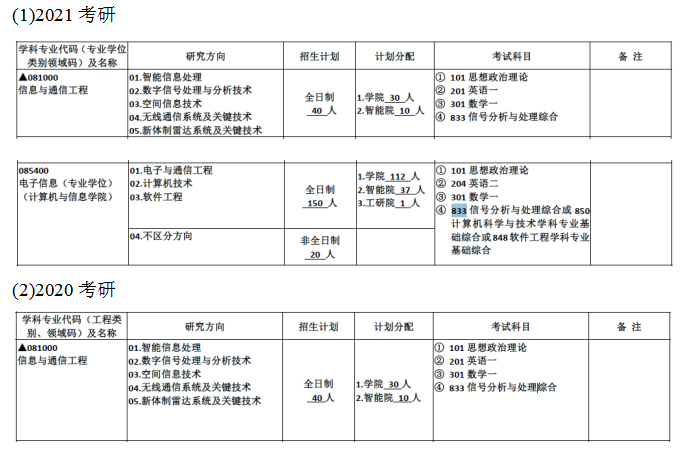 合工大考833信号分析与处理综合的有两个专业:信息与通信工程和电子与通信工程,根据2017、2018、2019以及2020电子与通信工程的招生人数,可以预测2022考研电子与通信工程也是招50人左右。