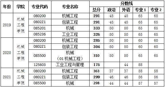 2019-2021年的机械工程学院复试分数线