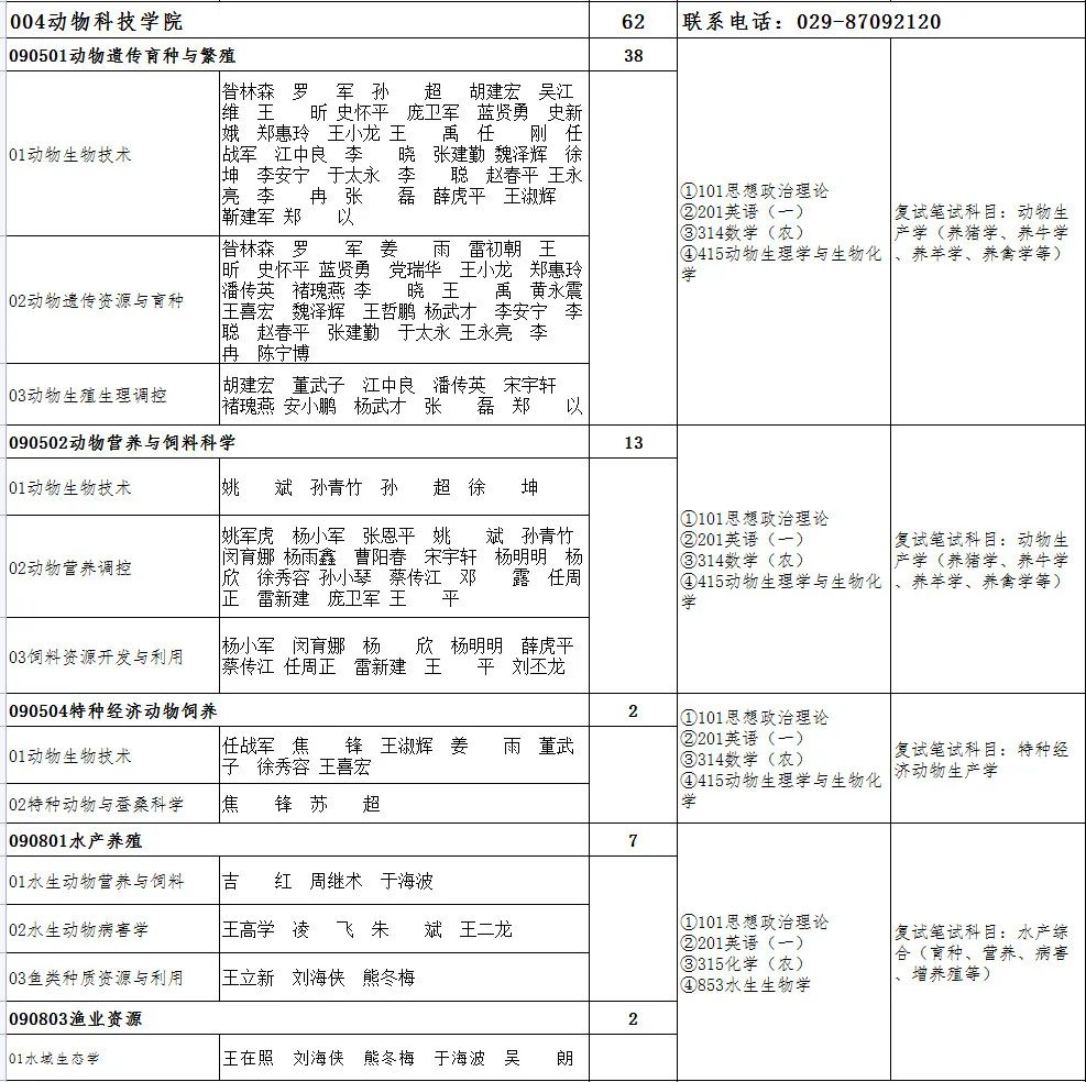 ②动物生产学科目:动物遗传育种与繁殖、动物营养与饲料科学专业