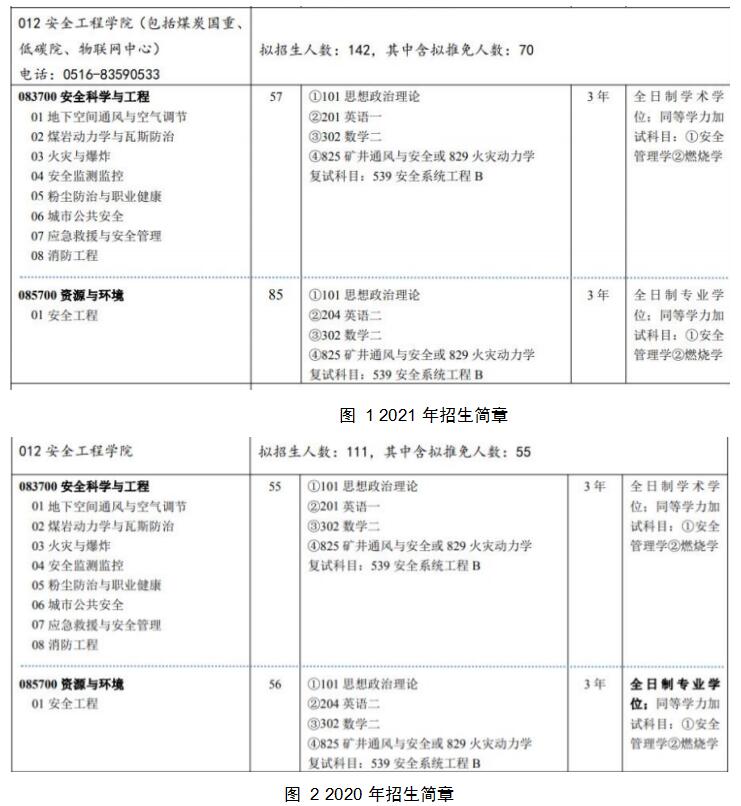 注:通过每年的矿大招生简章就可以直接查询每年的招生名额,招生名额主要由推免+考试统招所构成,如下图,但是每年实际收取的人数远比招生简章的收取人数较多,由于近些年硕士大量扩招的原因,专硕的人数录取远比学硕多,但由于政策的改变,现如今专硕和学硕并无区别,同样在矿大都可以申请考核读博。性价比来说:专硕远大于学硕。