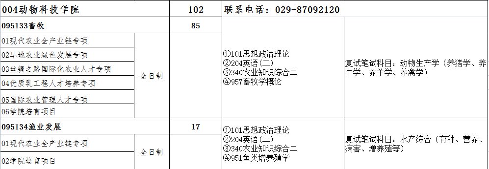 ②动物生产学科目:动物遗传育种与繁殖、动物营养与饲料科学专业