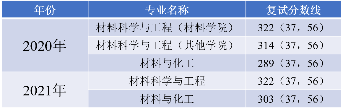 表2 2020-2022年北科材料学部复试线