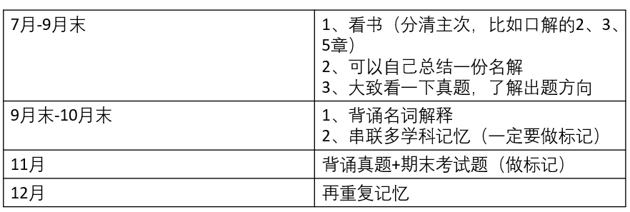 以上是我的复习时间安排,我开始得比较晚,是因为我们上半年有很多得专业课,在上半年一直在复习期末考试,正式开始考研复习应该就是期末考试完也就是7月出头了。我们在期末考试复习的时候就相当于是在复习考研,所以不推荐大家7月才开始复习专业课,时间太仓促了,最好3月份就要开始认真复习,做好规划。大家如果在考研复习过程中有困难的话,也不妨报一个辅导班,比如新祥旭考研全科一对一私人订制VIP辅导课程,针对性强,上课时间可以灵活协商,课下还可以免费答疑解惑,对考研初复试应试备考这块的帮助是非常明显的。