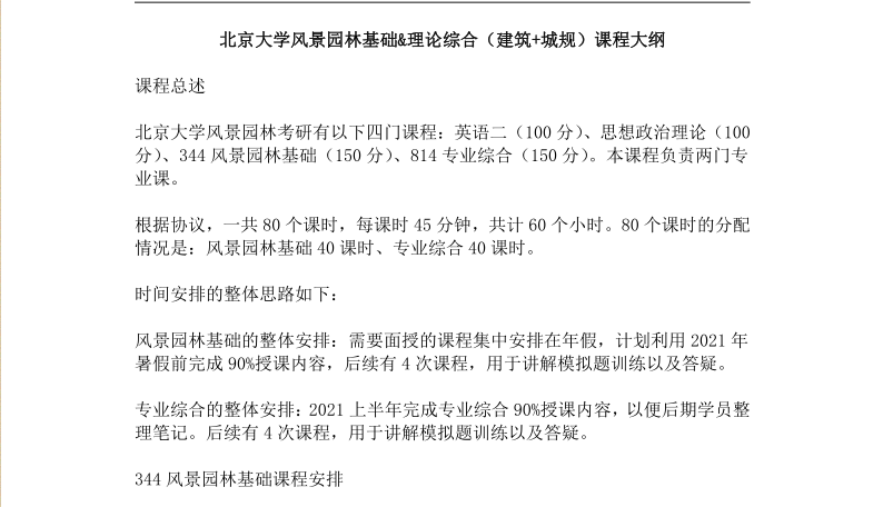 北京大学风景园林硕士考研专业课复习参考书目、复习规划、授课计划、真题题型特点趋势总汇