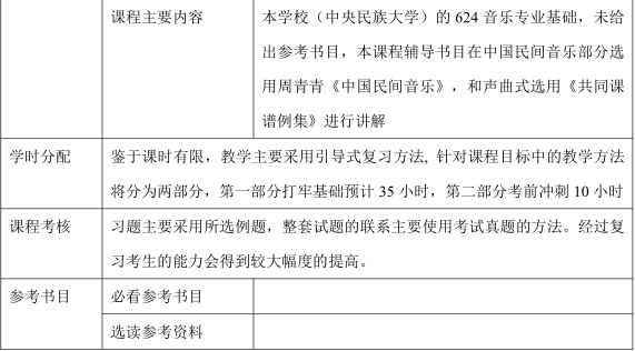 中央民族大学音乐学院考研专业课(③624音乐专业基础④511音乐专业主课)复习参考书目、复习规划、授课计划、真题题型特点趋势总汇