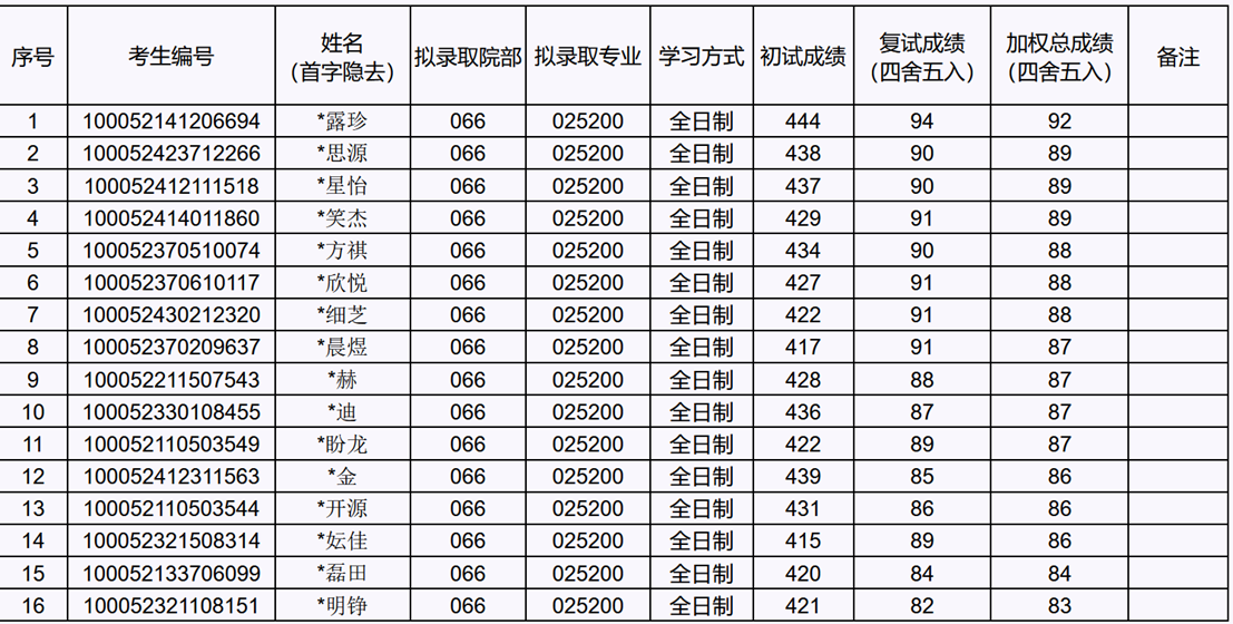 图4 2022年拟录取名单