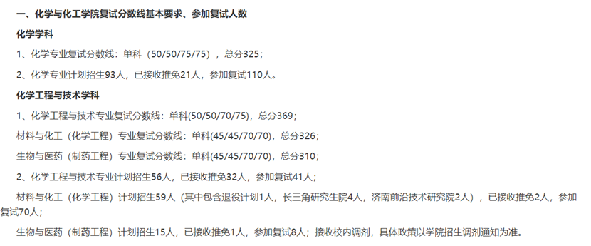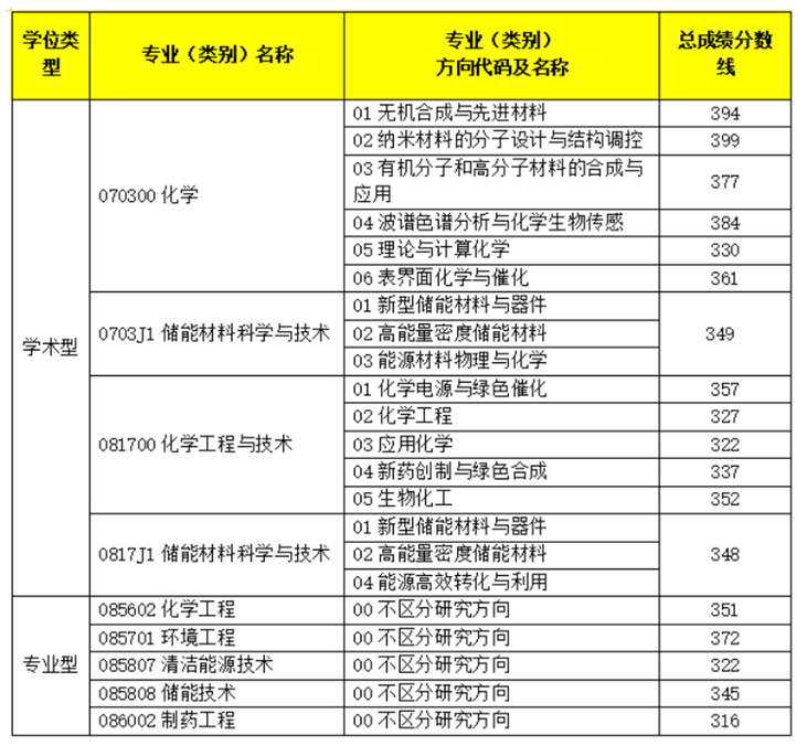 这是今年北理化工各个方向的复试基本分数线