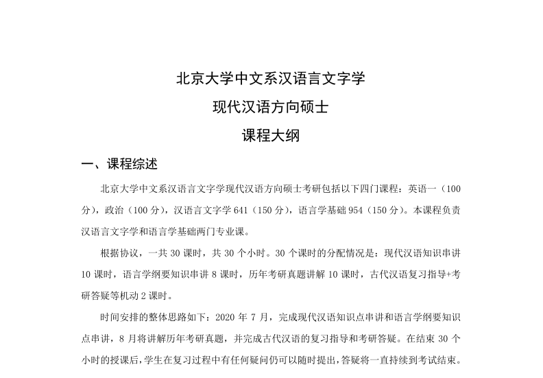 北京大学汉语言文字学(现代汉语方向)考研专业课复习参考书目、复习规划、授课计划总汇