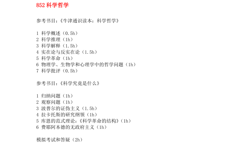 北京大学哲学系科学技术哲学专业考研专业课参考书目、复习规划、授课计划