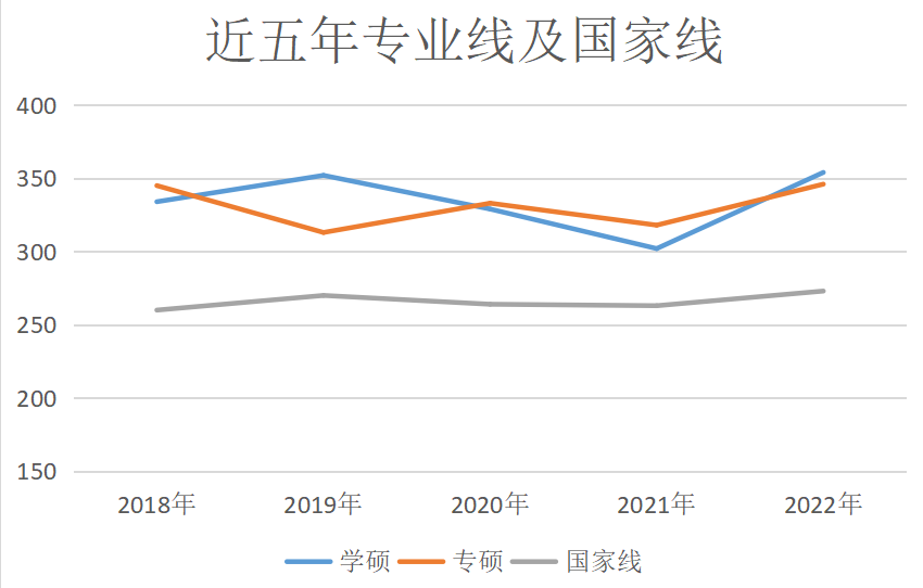 根据统计数据,很明显可以看到今年的分数线与去年相比涨幅是非常大的,高达52分!!!尤其是今年北科安全专业的学硕,复试分数达到了近五年的新高,354分,近五年专业线及国家线趋势见下图:
