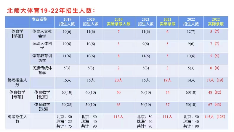 上图为北师大体育专业近几年的拟招生人数和实际招生人数,可见,学硕的复试比较为可观,基本学硕进入复试便基本被拟录取,专业虽然刷的人较学硕多,但大体上还是比较可观的,根据上图也可看出来,北师大体育专业每年都在扩招,由此也可预测,23年的招生人数将也会有一定程度的扩招,虽然可能浮动不大。