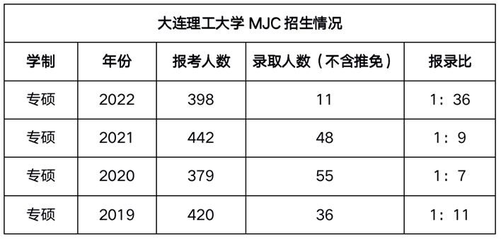 大连理工大学从2019年取消学硕以来,专硕的报录比变动还是很大的。20和21年录取50人左右,但2022年仅录取11人。所以未来录取人数仍然存在一定不确定性。