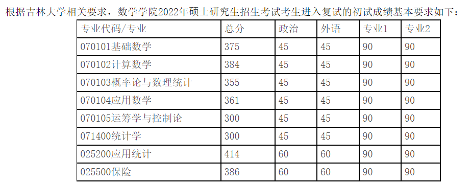 (3) 前两年之前的总分数线是320,,专业课是90,公共课是45:21年总分数线是300,专业课是90,公共课是45;22年的总分数线如下图;