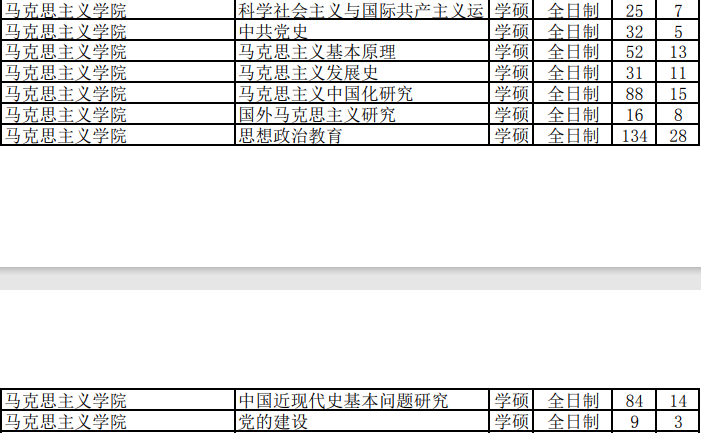 (1)复试情况:今年复试的分数线为政治70英语70 专业课105总分370,即使这么高的分数都有150多个人上线,所以也不用害怕,只有努力了,一般没问题。每个二级学科录取情况都不同,比如马原、马发史、国外马,只要过了院线都录取了,而马中化、近代史、思政复试刷人非常多,报考这些专业的同学们在出成绩后也不能掉以轻心,比如马中化就刷掉了初试的第一第二名,挺残酷的。