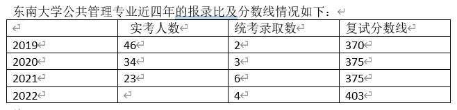 东南大学公共管理专业近四年的报录比及分数线情况如下: