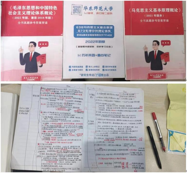 10.26-12.23重点是阿飞学长的两本对应题库书,过了四遍。每门科目每天过13页,大概15天就能过一轮,背书更重要是在读背中思考阿飞学长答题中的思路,慢慢形成自己对题目的思考;一轮教材加一轮阿飞真题后,开始看本校历年真题(用的是研究生传送门淘宝店铺的专业真题书),积累真题相应知识点,思考自己的真题答题思路,并到网上查阅相关文章,进行总结积累,真题也过了三遍左右;另外就是时政,进入12月,会有很多时政相关资料,每天晚上看半个小时,我看的是研霸君整理的时政材料以及阿飞学长真题群里分享的内容。(最好买答题纸在答题纸上演练一两套题,探一下答题篇幅,写字速度,排版这些)。