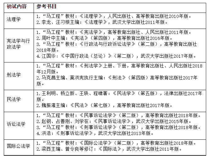 武大法学考研是从2020年开始改革的,改革后,各个专业的初试科目都相同,并统一划线进复试。具体考核科目分为:①101思想政治理论,②201英语一或202俄语或203日语,③623法学基础A(含法理学、宪法学与行政法学、诉讼法学),④824法学基础B(含刑法学、民法学、国际公法学)。