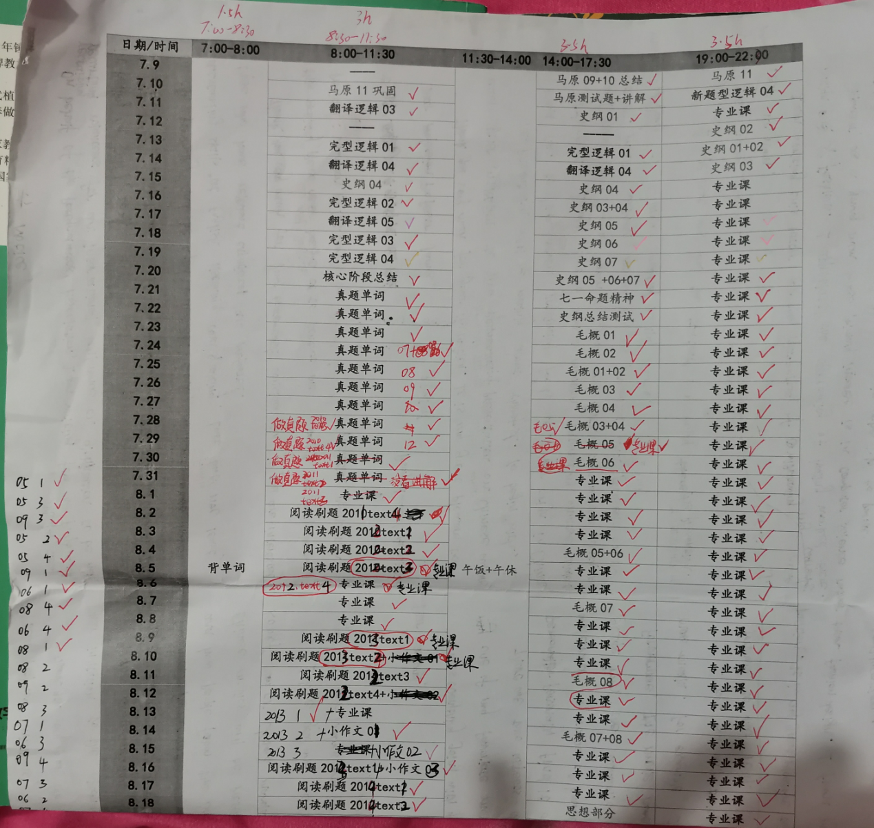 建议:一定要做好规划,年规划,月规划,日规划,尤其是不太自律的同学,一定要强迫自己列计划表并认真完成,我可以用我暑假一段时间的规划打个样,仅供参考,不一定要跟我的一致,保持好自己的节奏。