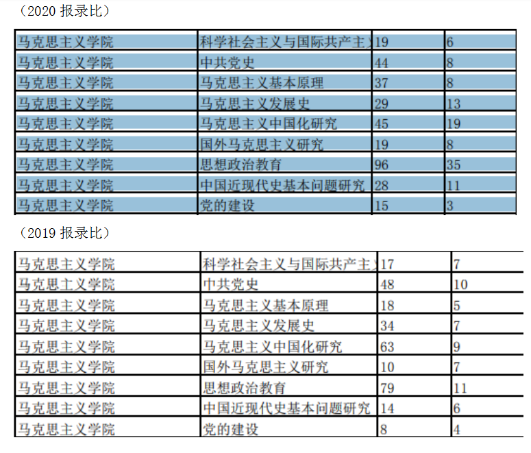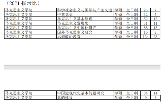 (1)复试情况:今年复试的分数线为政治70英语70 专业课105总分370,即使这么高的分数都有150多个人上线,所以也不用害怕,只有努力了,一般没问题。每个二级学科录取情况都不同,比如马原、马发史、国外马,只要过了院线都录取了,而马中化、近代史、思政复试刷人非常多,报考这些专业的同学们在出成绩后也不能掉以轻心,比如马中化就刷掉了初试的第一第二名,挺残酷的。