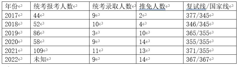 我列了一个表,可以直观看到近几年上大日语笔译专业统考报考人数、录取人数(不含推免)、推免人数、复试线。