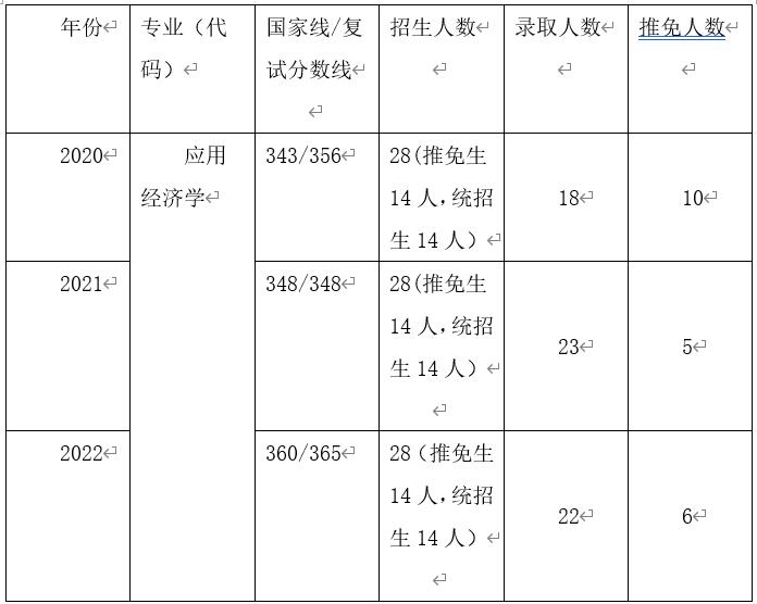 应用经济学专业近三年的报录比(计划招生人数、录取人数、分数线、推免)