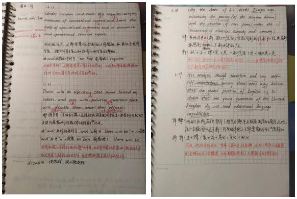 英语:英语这一科的复习会伴随着我们考研的整个过程,建议同学们在7月之前把主要重心放在高频词汇的反复背诵以及长难句的解析上,在没有熟练储备大量单词的前提下去进行阅读训练效率会很低并且会浪费真题,同学们可能会觉得长难句的训练可有可无,但是在考研英语的阅读以及翻译题型中(尤其是英语一),同学们往往会因为看不懂繁琐复杂的句型结构而理解错原文意思导致失分,这里我给大家展示一下我在训练长难句时的示例供同学们参考。