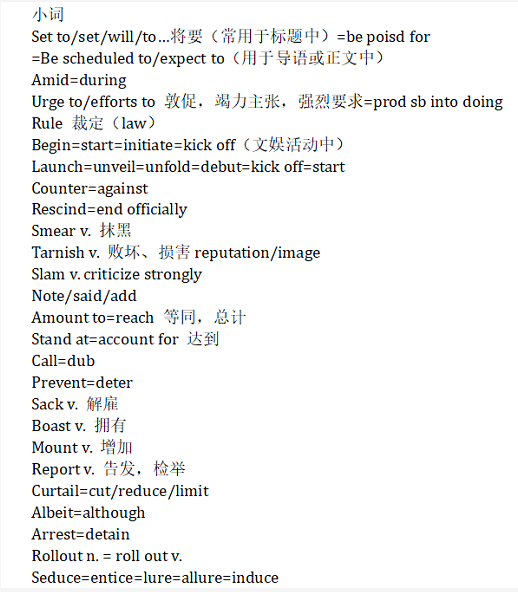 考前:复习以前所有练习的编译,以及积累的小词与表达,并按照新闻分类归纳编译结构,总结需要注意的地方。