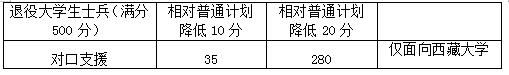 退役大学生士兵(满分500分)相对普通计划降低10分相对普通计划降低20分