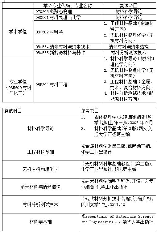 注:学硕-生物医学工程,专硕-电子信息、生物医学工程,已不在材料院。上述复试参考书目,个人感觉还是针对线下复试存在笔试的情况,线上复试建议以材料科学基础为主,可适当结合所报考方向和上表书目适当补充。
