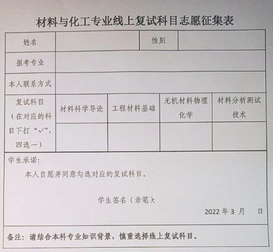 确定复试名单后,对于专硕学生,老师会让填一个表格自己选择复试科目,该科目不代表实际入学的研究方向。