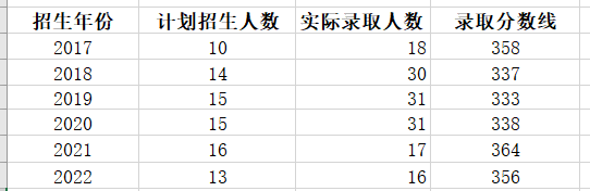 可以看出,每年的实际录取名额都会比计划的多,18-20年的录取人数甚至达到了30个,但是从21年开始有缩招的趋势,最终的录取人数比计划只多几个,不会出现30个的情况了。另外,录取分数线也相应提高了,大家的初试分数要尽能考的高一些。