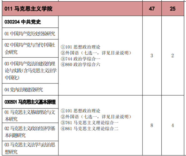 法大马院2021年和2022年都招收了调剂,主要原因是参考书目较多(6本),而且马理论分专业方向招生(马原、马中化、思政教育、近现代史、国外马),本身法大又不是一个规模很大的院校,这就导致每个专业方向看起来招生人数都不多,劝退了一大批考生。因此,这两年多个专业方向都是以国家线作为复试线,而这两年上岸的同学多少有点捡漏了。