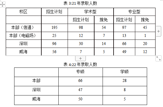 哈工大是一所非常有实力的985院校,所以它具有一定的考研难度。表1是哈工大近三年的分数线情况,20年的时候是335分,21年的时候是350分,22年的时候是345分,其中还会有单科分数线。如果你不过这些单科分数线的话,即使你总分都超过了复试线,你也不会进入复试。下面表2,表3,表4分别是20、21、22年的招生人数。