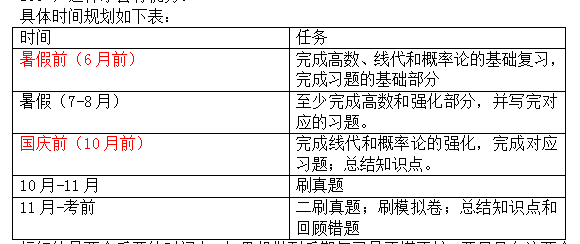标红的是两个重要的时间点,如果想做到后期复习是不慌不忙,要尽量在这两个时间点完成对应的任务。